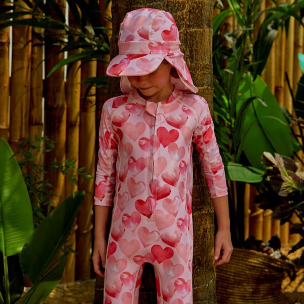키즈 올인원 수영복 Pink Bubble Heart